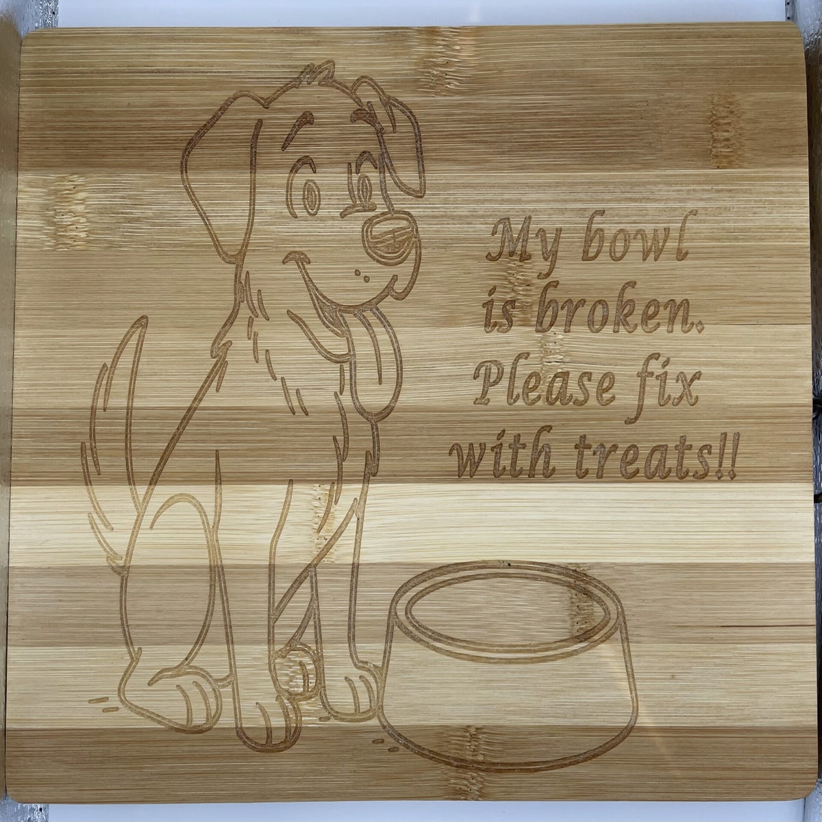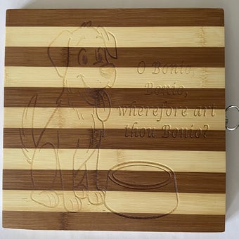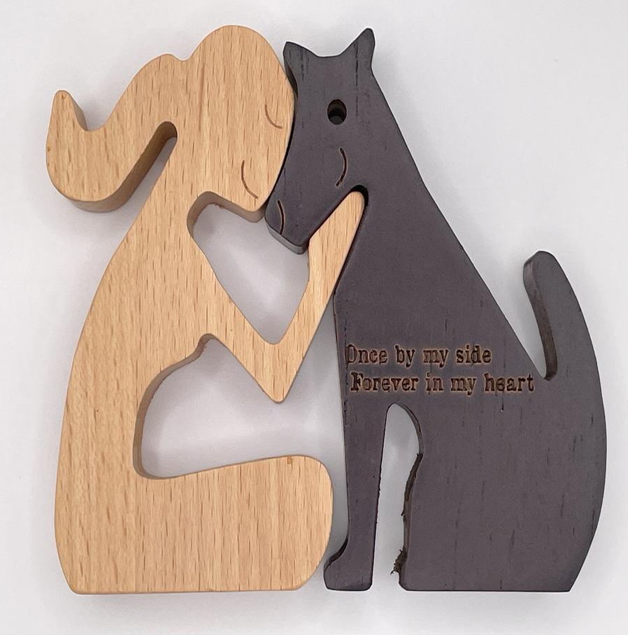 "Once by my side, Forever in my heart" is the caption engraved on the dog. A great gift for any dog lover.
