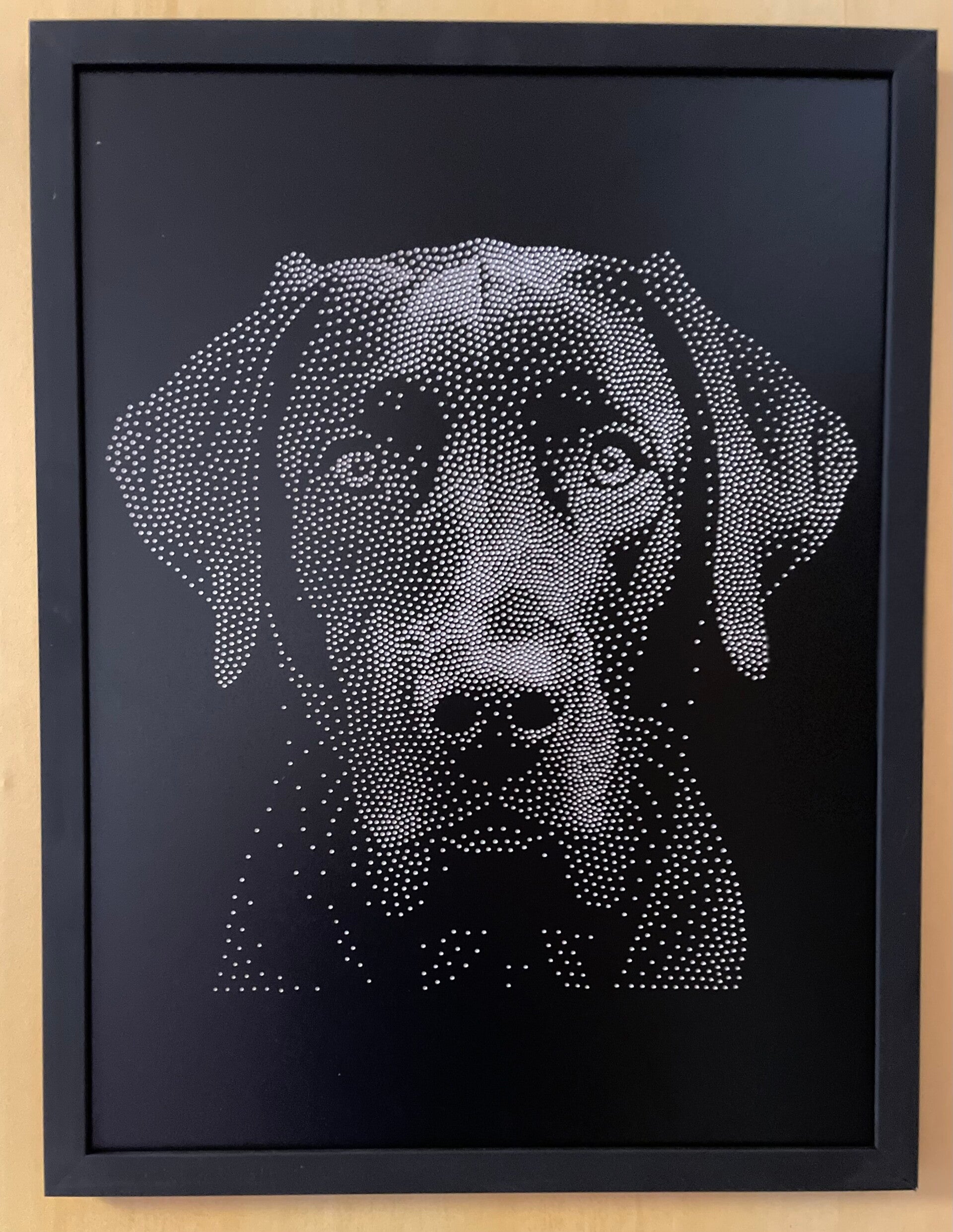 "Once by my side, Forever in my heart" is the caption engraved on the dog. A great gift for any dog lover.